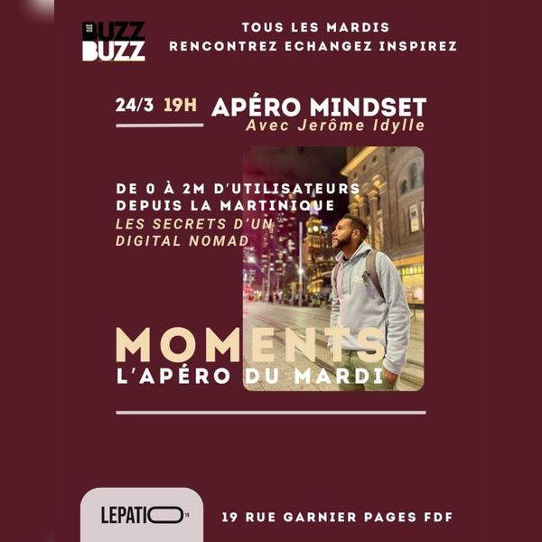 LEPATIO19 et Buzz Mag Martinique vous invitent à une nouvelle édition de « Moments », l’apéro du mardi, un rendez-vous incontournable pour rencontrer, échanger et s’inspirer autour de thématiques entrepreneuriales et digitales. Cet événement s’inscrit dans une dynamique de partage d’expériences et de mise en relation entre professionnels, porteurs de projets et passionnés du digital.