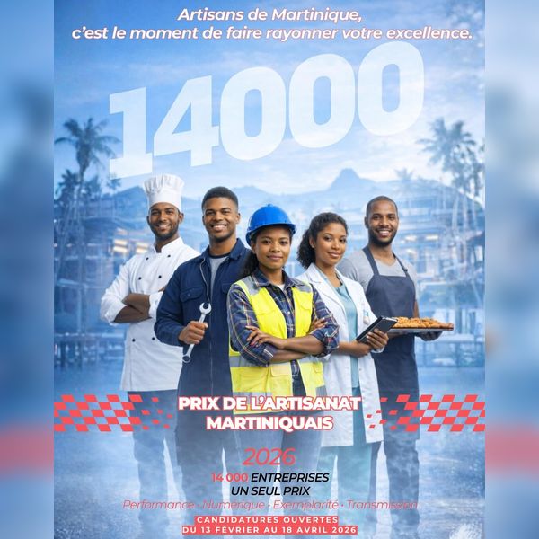Le Prix de l'Artisanat Martiniquais 2026 met à l'honneur les femmes et les hommes qui font vivre l'artisanat en Martinique, en valorisant les entreprises capables de conjuguer savoir-faire, ambition et exigence. Porté par la CMA Martinique, avec le soutien de partenaires engagés, ce prix a pour vocation de faire rayonner l'excellence artisanale et de donner de la visibilité aux démarches les plus inspirantes du territoire.