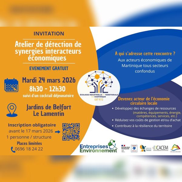 L'atelier de détection de synergies entre acteurs économiques s'inscrit dans la dynamique de l'Écologie Industrielle et Territoriale en Martinique. Cette démarche vise à encourager la coopération entre les entreprises, les organisations et les structures du territoire afin d'améliorer l'utilisation des ressources et de développer des pratiques plus durables. L'objectif est de favoriser une économie plus circulaire en créant des opportunités de collaboration concrètes entre acteurs économiques.
