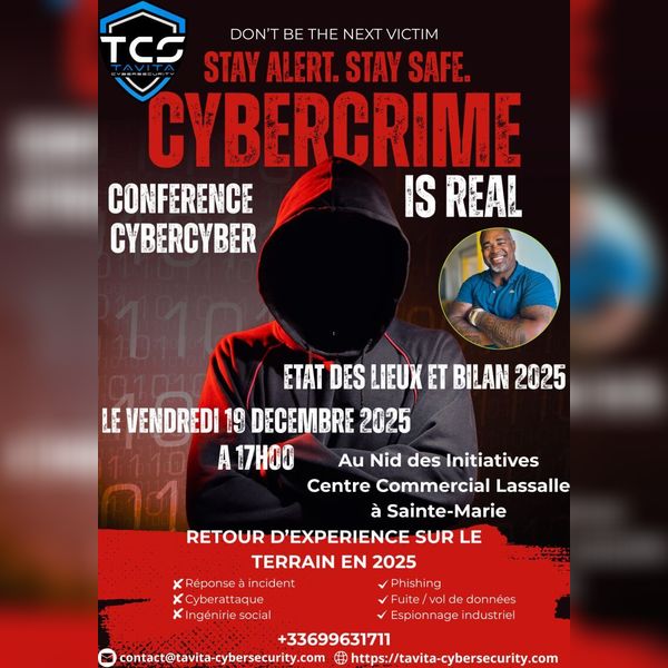 À l’ère du tout numérique, la menace cyber n’est plus une hypothèse mais une réalité concrète. Les périodes de fêtes, propices aux achats en ligne et à l’activité soutenue sur les réseaux, amplifient les risques. C’est pourquoi l’association Tavita Cybersecurity organise une conférence dédiée à la sécurité numérique : un temps unique pour faire le point sur les dangers, partager des retours d’expérience et acquérir des réflexes simples mais essentiels pour protéger vos données personnelles, professionnelles et familiales.