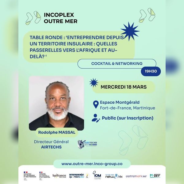 Parmi les intervenants de cette soirée figure Rodolphe Massal, Directeur Général d'AIRTECHS. Fort de son expérience dans le développement d'entreprises innovantes, il apportera un éclairage sur les stratégies de croissance internationale et sur les opportunités de collaboration entre les territoires ultramarins et les marchés africains.