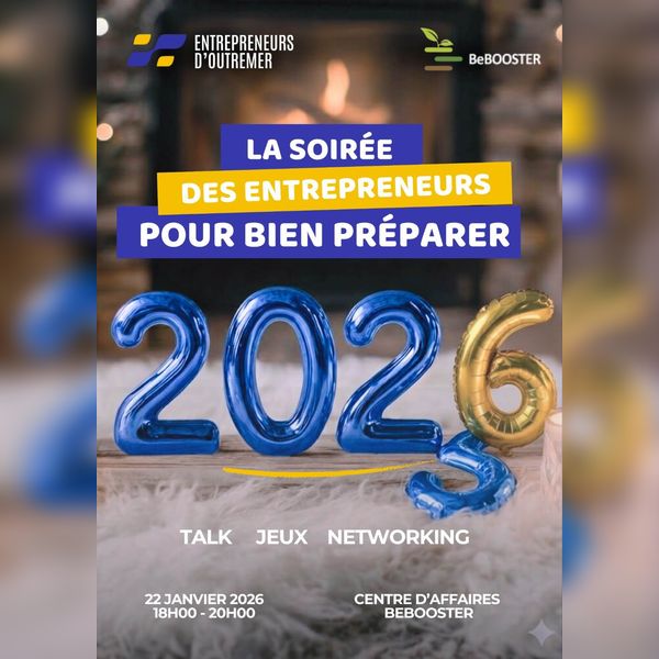 Et si 2026 devenait votre meilleure année entrepreneuriale ? Pour bien démarrer cette nouvelle année, Entrepreneurs d’Outremer, en partenariat avec BeBOOSTER, vous invite à une soirée gratuite placée sous le signe du networking, de l’échange et de la motivation.