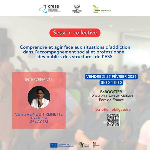 La CRESS de la Martinique propose une session collective dans le cadre du dispositif ESSor, Accélérateur de l’Économie Sociale et Solidaire. Cette initiative s’adresse aux structures et professionnels engagés dans l’accompagnement social et professionnel qui souhaitent renforcer leurs compétences face aux situations d’addiction rencontrées sur le terrain.