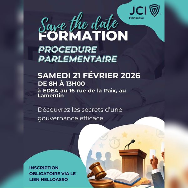 La JCI Martinique organise une formation dédiée à la procédure parlementaire afin d’accompagner les jeunes leaders dans le développement de leurs compétences en gouvernance et en organisation des débats. Cette session s’adresse aux personnes engagées souhaitant structurer leurs prises de parole et améliorer l’efficacité de leurs réunions.