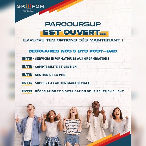 Le centre de formation Skillfor propose une large gamme de BTS en alternance, qui permettent d’acquérir une solide expérience professionnelle tout en poursuivant ses études. Lors de cet événement, vous pourrez découvrir en détail les BTS disponibles dans des domaines variés tels que la comptabilité, la gestion, l’informatique, la relation client, le commerce, l’administration et bien d’autres filières adaptées aux besoins du marché local et national.