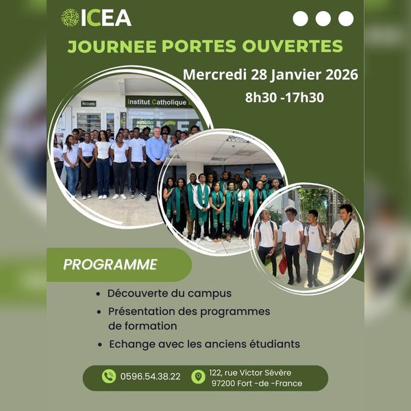 Situé à Fort-de-France, au cœur de la Martinique, l’ICEA propose des parcours de formation reconnus et professionnalisants, pensés pour répondre aux attentes des jeunes et aux besoins du monde professionnel. Cette Journée Portes Ouvertes est l’occasion idéale pour venir échanger avec les équipes et obtenir des réponses concrètes sur les filières proposées.