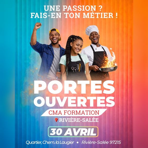 Les portes ouvertes de CMA Formation à Rivière-Salée représentent une opportunité unique pour découvrir les métiers de l’artisanat et construire un projet professionnel concret. Destiné aux jeunes, aux personnes en reconversion et aux familles, cet événement permet d’explorer de nombreuses filières accessibles en formation ou en apprentissage, dans un cadre convivial et interactif.