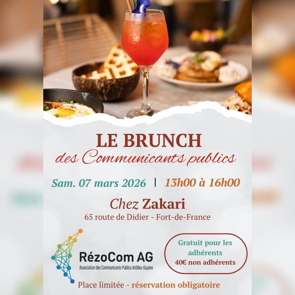 L’association RézoCom Antilles-Guyane lance le premier brunch des communicants publics, un rendez-vous professionnel pensé pour rassembler les acteurs de la communication institutionnelle autour d’un moment à la fois stratégique et convivial. Cette initiative vise à créer un espace privilégié d’échanges entre professionnels engagés au service de l’intérêt général.