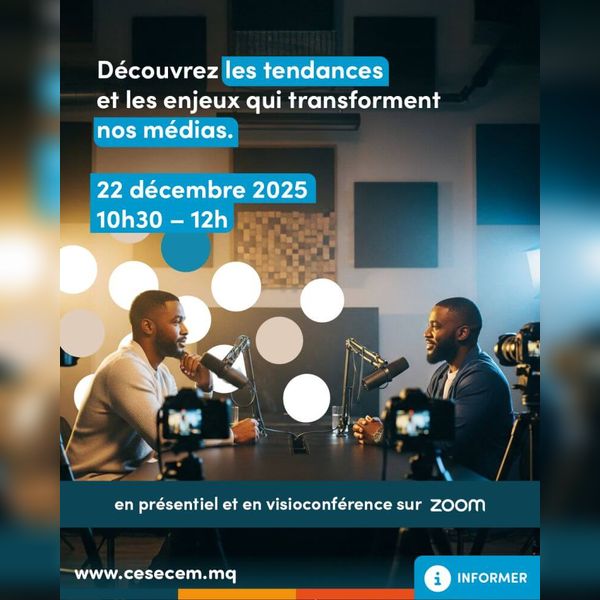 Le CÉSECÉM (Conseil économique, social, environnemental, de la culture et de l’éducation de Martinique) vous invite à une rencontre essentielle consacrée à l’avenir des médias sur le territoire. À l’occasion de la restitution d’une grande étude menée en 2025, cet événement propose un regard clair et structuré sur l’évolution du paysage audiovisuel martiniquais.
